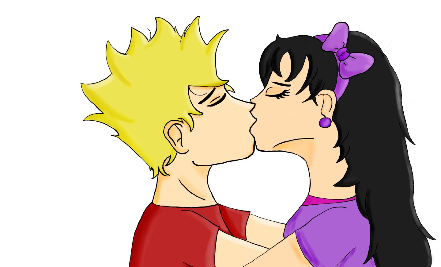 Nach einer Zeit hab ich ein paar ältere und neuere Bilder für euch. Das Bild mit dem Kuss soll Bart Simpson und Jessica Lovejoy (ich find, dass die gut zusammenpassen :D ) darstellen. Ich galube, dass der Hals von Jessica zu lang ist, naja, auf jedenfall sieht der i-wie komisch aus... Mit dem Bild bin ich eh noch nicht fertig! ;D