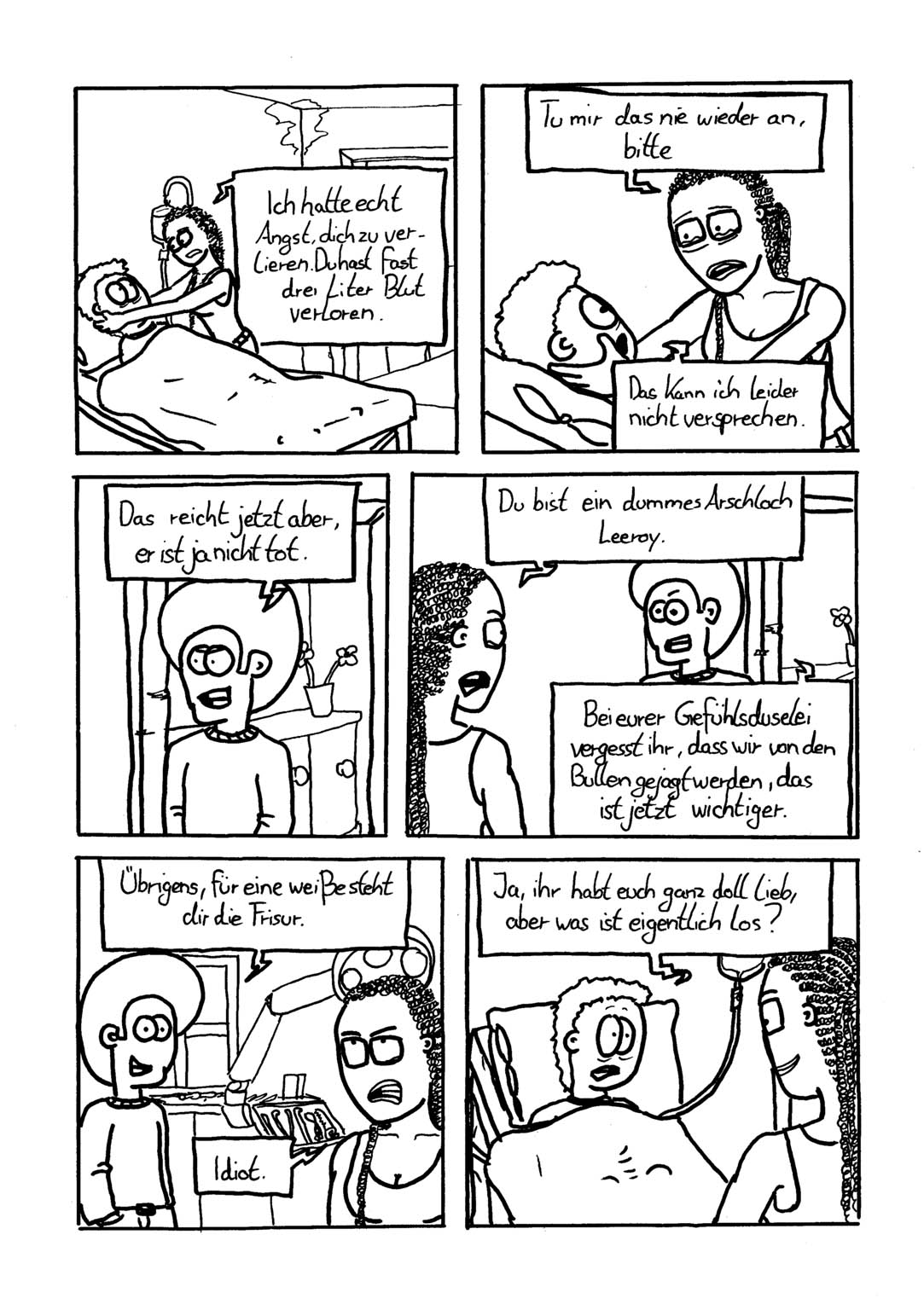 Das mit der Spannung hab ich auch stundenlang ausgerechnet und penibel bei dem Layout drauf geachtet, das man wissen will, wie es weitergeht. Ich gehe nämlich so vor: Ich mal mir die Seite klein auf und zeichne die Panels ein, dann Schreib ich mir auf, was ins Bild und in den Text soll. Also eine Art Drehbuch, aber immer nur eine oder zwei Seiten im Voraus. Da ich mich nicht in irgenteine Idee verrennen will, die mir am nächsten Tag nicht mehr gefällt.