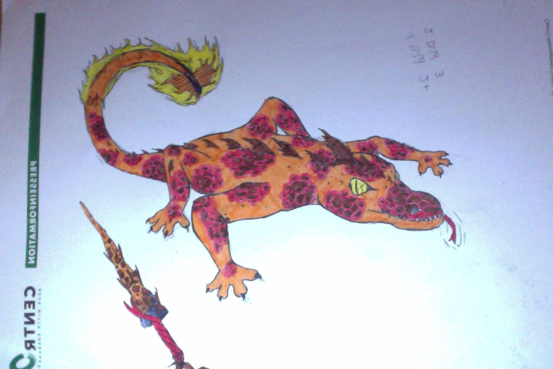 Deine Zeichnungen wirken in Farbe auf jeden Fall besser. Das Teamwork mit Deinem Bruder solltest Du ausbauen! Gelungen ist auch die perspektivische Darstellung des Drachen.