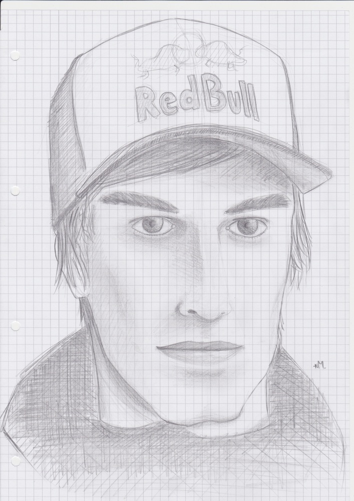 Stichwort "Portraits": Hier eine neue Zeichnung. Diesmal wieder mit Bleistift auf einen Karoblock. Ist von einem Foto von Gregor Schlierenzauer abgemalt ;)