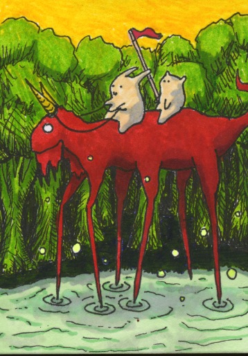 Mir gefällt die Karte mit dem roten Reittier am besten, die Farben sind auch super gewählt. :thumbsup: