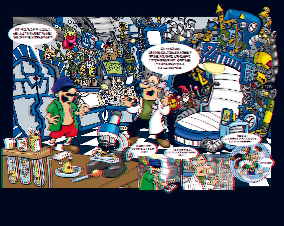 Einmal die Vorzeichnung, die fertige Version und dann nochmal in 3D für alle, die eine Cyan/Rot Brille zu Hause haben.