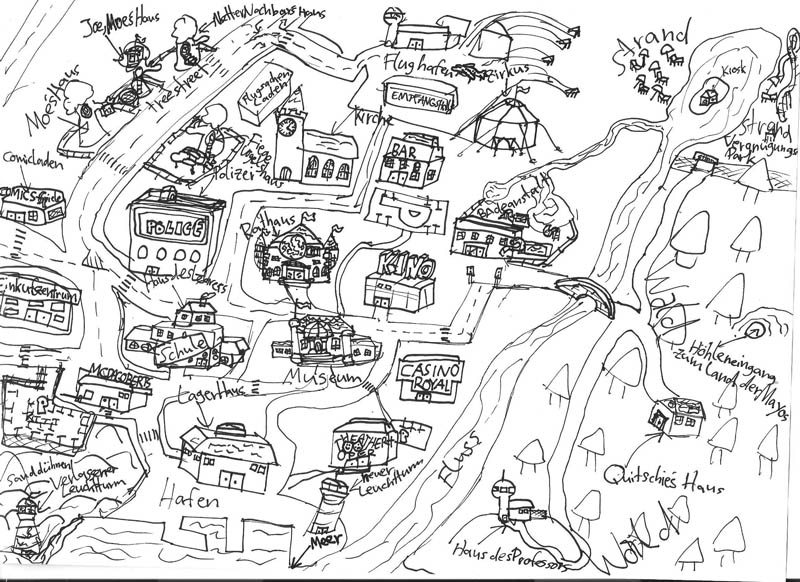 Ich hab hier mal grob den wichtigsten Teil der Stadt gezeichnet, den mit den wichtigsten Gebäuden :)