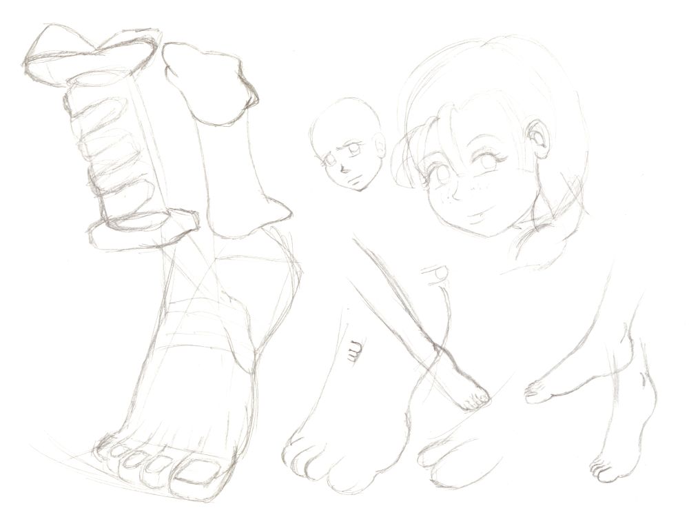 Ein bißchen klobig die Quanten. Die Rundung zwischen Ballen und Ferse könntest Du dann in der Reinzeichnung etwas geschwungener zeichnen.