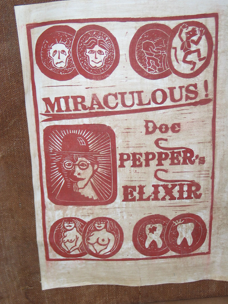 Am Freitag besuchten wir als erstes das 45-minütige Stück "In Ze Dust" vom Théatre de Table. Das ausgelegte Info-Blatt forderte uns alle auf: "Kommen Sie und sehen Sie! Haben Sie keine Angst vor der Angst, die Angst macht." Angst hatte ich eigentlich nur davor, dass wir in der engen Dachkammer über der Goldschmiede, deren Fenster für die Aufführung natürlich geschlossen und verdunkelt waren, ersticken könnten. Aber sonst war es wenig angsteinflößend, was Eric Poirier im Kostüm seiner Hauptfigur Doc Pepper auf offener Bühne vollführte, obwohl dauernd jemand abgeknallt oder sonstwie gemeuchelt wurde. Vielleicht rührte unser Wohlbefinden aber auch von den Wunderpillen her, die er vorher im Publikum herumreichen ließ und die nach Lakritz schmeckten.