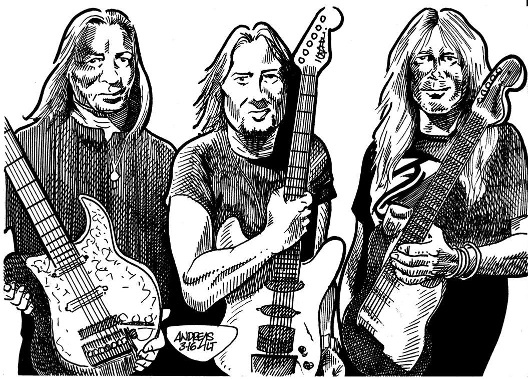 Hier mal zwei Illustrationen zu meinem neuen Rockbuch. Kennt jemand die Band?