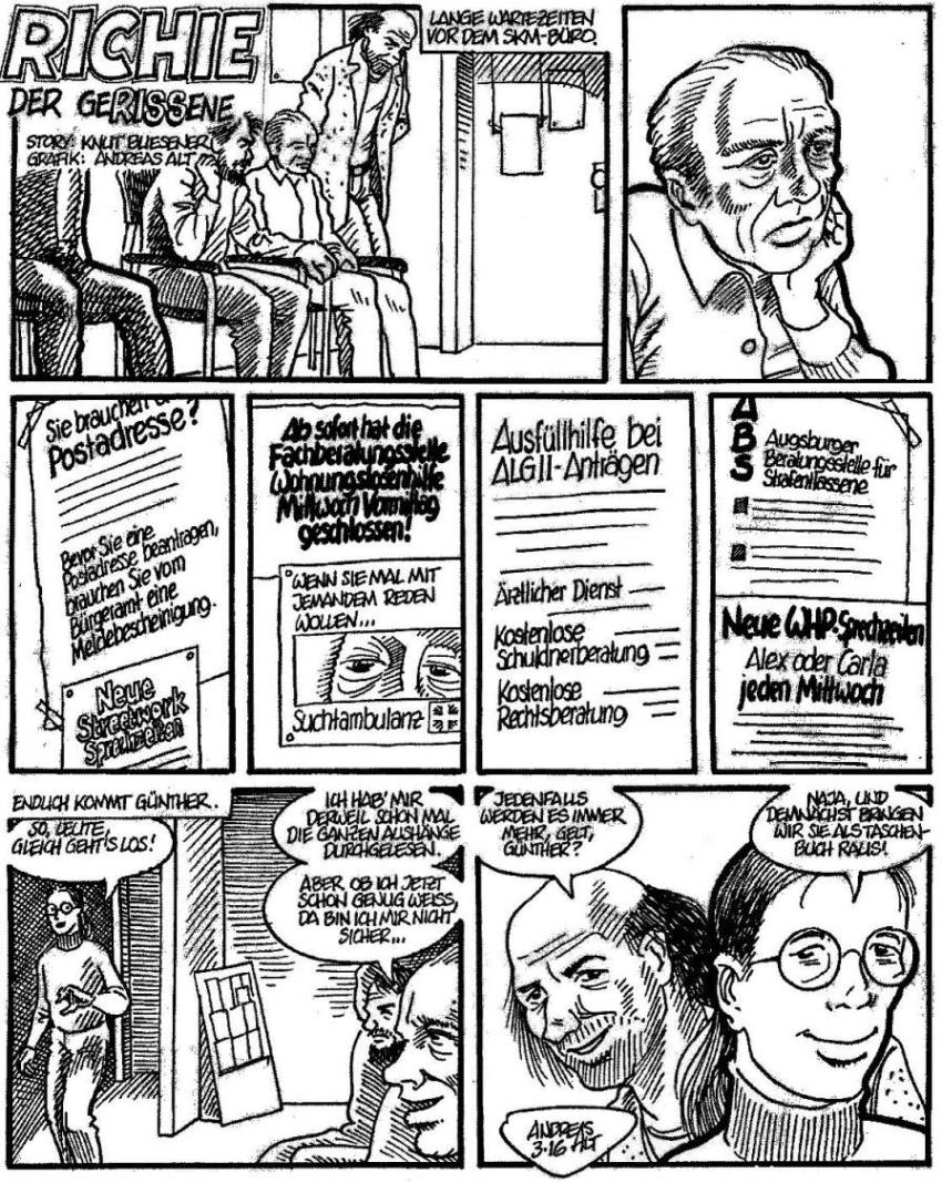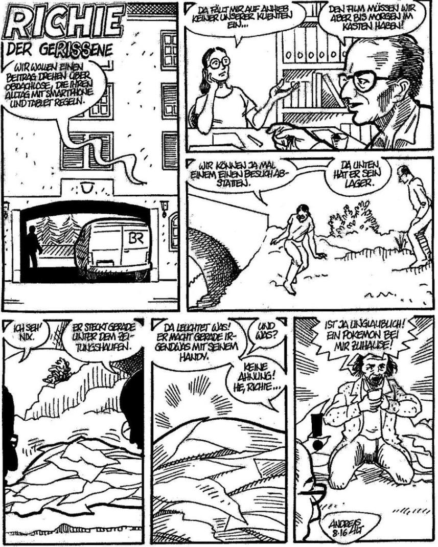 Nach längerer Zeit (in der es kein neues Obdachlosenmagazin gab) habe ich mal wieder eine "Richie"-Folge gezeichnet.