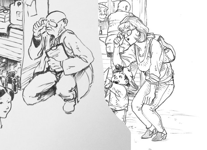 Ich weiß auch nicht genau, wieso ich das so spannend finde. Fakt ist, dass ich von Kindesbeinen an irgendwie immer so gezeichnet habe, dass ich nicht viel korrigierte. Eine Zeichenlehrerin an meiner Hochschule hat mal überrascht festgestellt, dass auf einer von mir getuschten Comicseite überhaupt keine Korrektur sei. Ich habe mir das wohl irgendwie so angewöhnt.