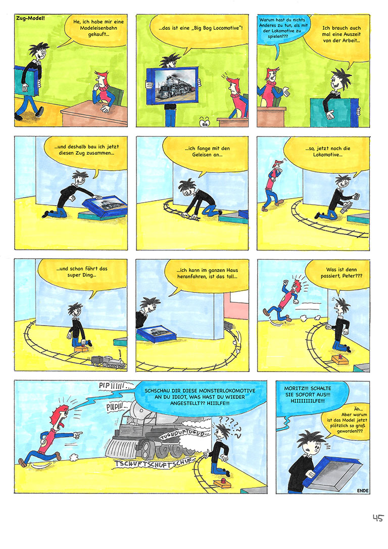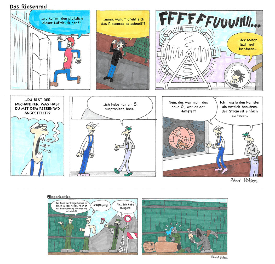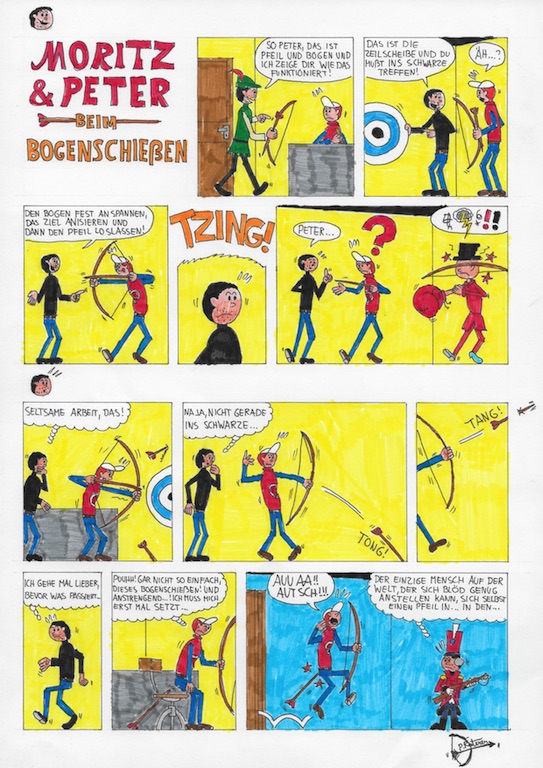 Ich muß gestehen, mir gefällt der Stan & Ollie-Comic am besten. Die anderen Sachen, die Du Dir vermutlich selbst ausgedacht hast, sind oft nicht ganz klar oder eben nicht so witzig, Richtig schlecht oder mißglückt finde ich aber keine Deiner Sachen.