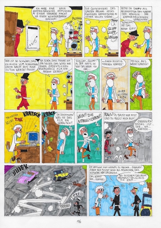 Ich gebe Kim recht, dass Seitenlayout und Soundwords sehr klassisch wirken. Spätestens bei dem "Arööh" im dritten Comic dachte ich dann an die deutsche Übersetzung von "Spirou und Fantasio"; und wenn ich mich nicht sehr irre, dann entstammt das Seitenlayout deiner Comics der Feder desselben Zeichners, nämlich Franqin, nicht wahr? Da heißt Dr. Doofmann dann aber Gaston...