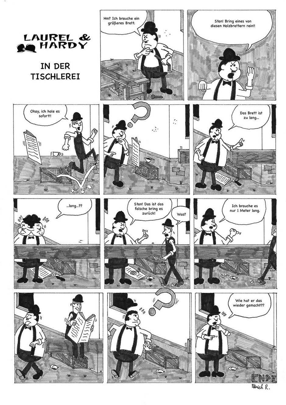 Ich muß gestehen, mir gefällt der Stan & Ollie-Comic am besten. Die anderen Sachen, die Du Dir vermutlich selbst ausgedacht hast, sind oft nicht ganz klar oder eben nicht so witzig, Richtig schlecht oder mißglückt finde ich aber keine Deiner Sachen.