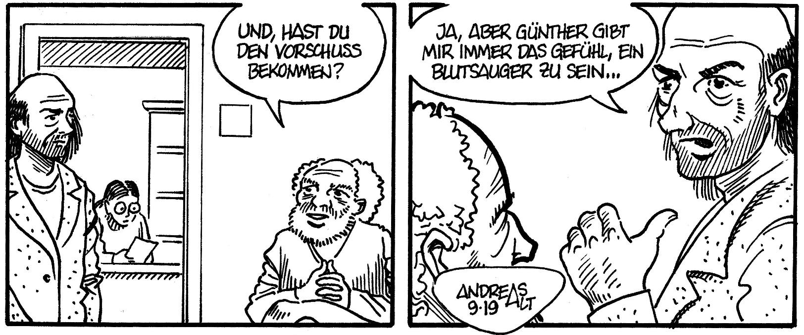 Im 3. Strip hatte ich im Hintergrund zuerst Mühe Günther darin zu erkennen. Die Figur erschien mir eher weiblich.