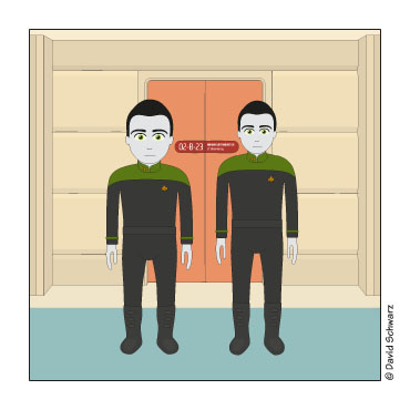 Dann stellt sich mir aber die Frage: Warum verfremdest Du Deinen Comic nicht noch ein bißchen mehr, machst eine eigene lustige Serie daraus und läßt Dich nur von TNG inspirieren?