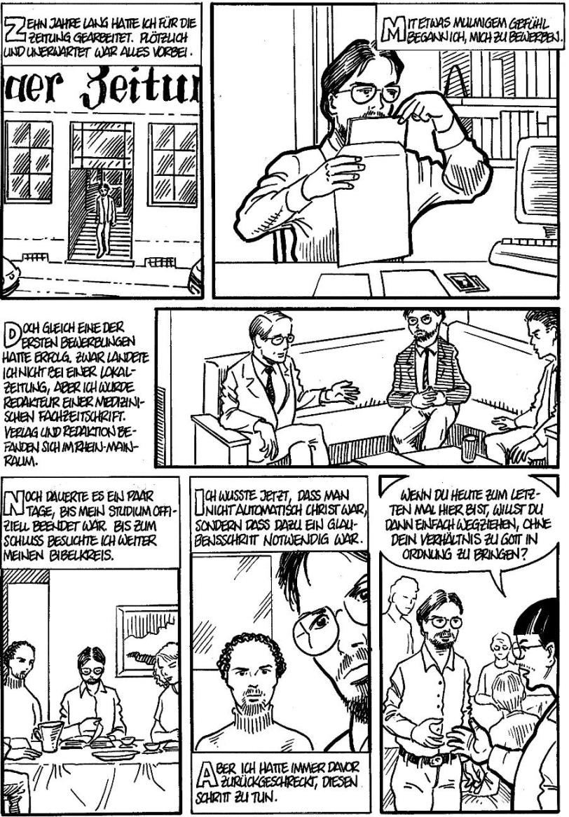Um Euch mal wieder auf den neuesten Stand zu bringen: Ich bin gerade dabei, vier weitere Seiten zu konzipieren. Jetzt geht's um den Übergang vom Studium zu meiner ersten Arbeitsstelle. Dummerweise erinnere ich mich an diese Zeit nicht besonders gut, aber mir steht jetzt der Briefwechsel (etwas später dann Mailwechsel) mit Daphne zur Verfügung, so daß ich das Ganze trotzdem einigermaßen authentisch darstellen kann. Ich will in nächster Zeit diese Seiten vorzeichnen und möglichst auch noch im Februar vollenden. Mal sehen, ob das klappt.