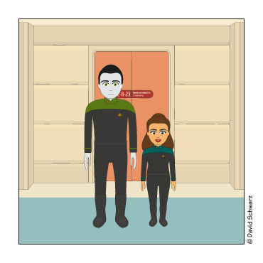 Die Frage verstehe ich nicht ganz. Genau das habe ich ja vor. Um mit der Borgkönigin zu sprechen: Du siehst einen Widerspruch, wo keiner ist. Eine Parodie oder auch eine Hommage ist ja zwangsläufig von der Vorlage inspiriert, geht aber immer auch darüber hinaus.Dann stellt sich mir aber die Frage: Warum verfremdest Du Deinen Comic nicht noch ein bißchen mehr, machst eine eigene lustige Serie daraus und läßt Dich nur von TNG inspirieren?