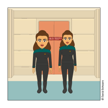 Dann stellt sich mir aber die Frage: Warum verfremdest Du Deinen Comic nicht noch ein bißchen mehr, machst eine eigene lustige Serie daraus und läßt Dich nur von TNG inspirieren?