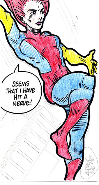 Ziemlich konventionelle Superhelden-Zeichnung, sogar Old Style...