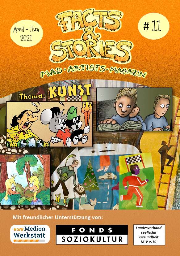 Dieses Heft entstand in Zusammenarbeit mit dem EX-IN Mecklenburg-Vorpommern e. V., dem Landesverband seelische Gesundheit Mecklenburg-Vorpommern e. V. Und dem Instutut für neue Medien Rostock gGmbH. Vielen Dank an Fonds Soziokultur für das Sponsoring. Also viel Spaß mit diesem Heft.