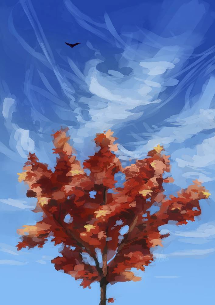 Beim Baum wollte ich mehr den Eindruck des Herbstlaubes rüberbringen. Der Himmel war mir ohne die Wolken zu leer, weiß aber was du meinst.