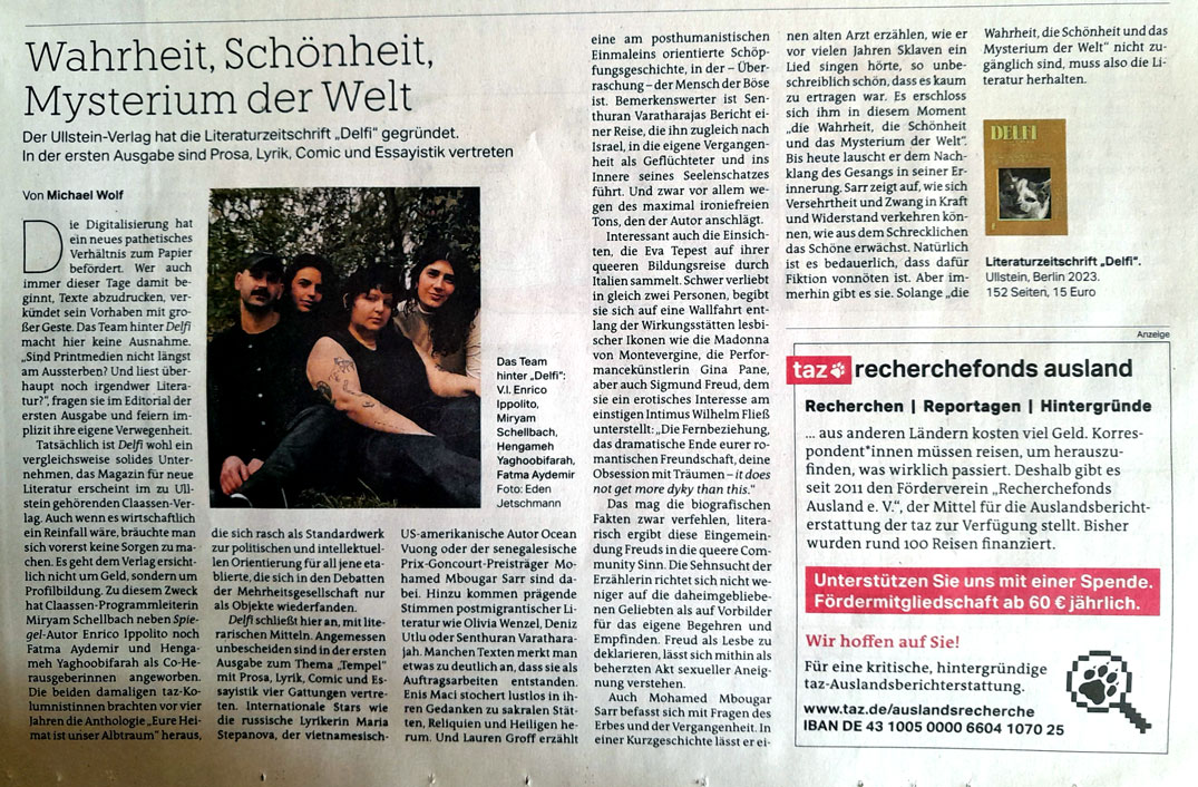 Gefragt nach den Gründen, sagt Dinter: "Es macht für uns keinen Sinn mehr." Seit einigen Jahren hätten Tauber und er sich zunehmend gefragt, wo sie mit ihrem Verlag hinwollten. "Wir arbeiten ja als Verlag mit kleinen Auflagen, aber bieten Künstler:innen, von denen viele auch unsere Freund:innen sind, eine gewisse Sichtbarkeit." Aber wenn dann von manchen Titeln, an denen die Autor:innen zwei oder drei Jahre gearbeitet haben und die in der Presse und auf Festivals gefeiert werden, gerade mal wenige hundert Exemplare verkauft werden, "dann ist das zum Heulen."