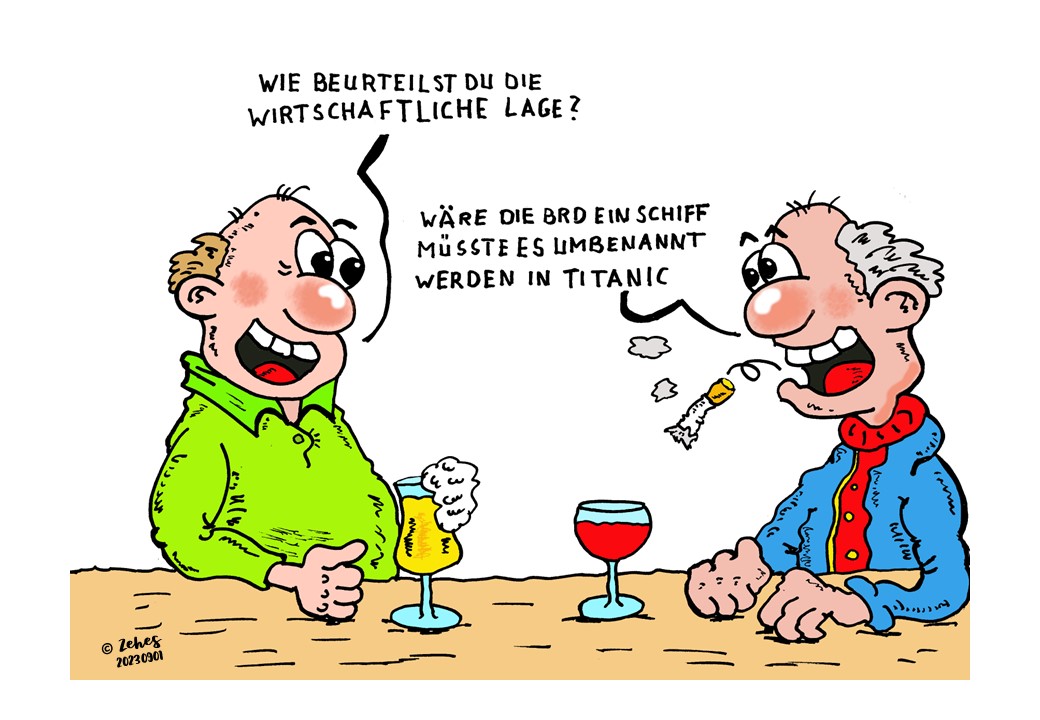 Zur wirtschaftlichen Lage sagt Kanzler Scholz mit realitätsverklärtem Blick: "Deutschland ist ein stolzes Segelschiff gewappnet für alle Stürme."