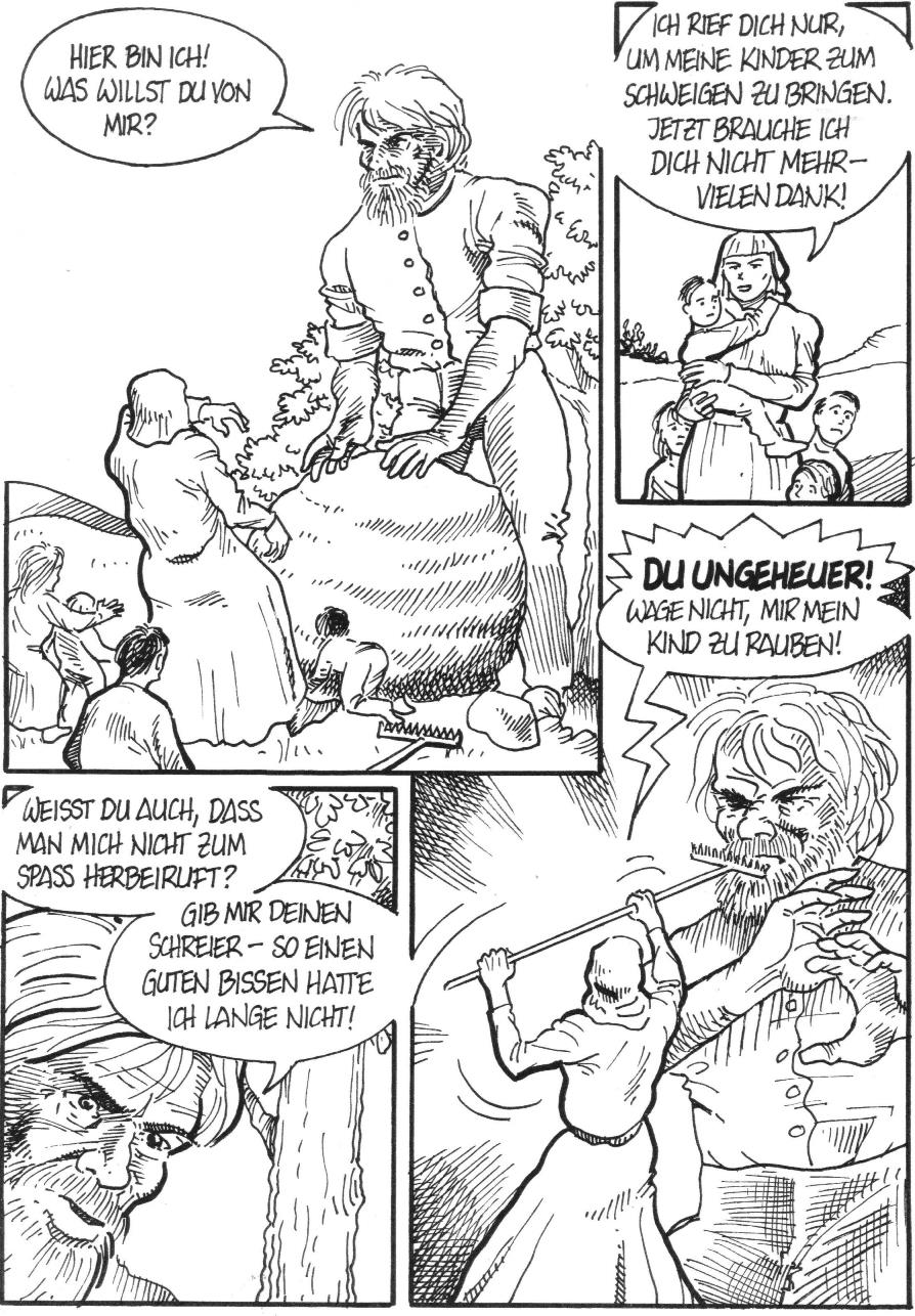 Ich sitze gerade an einem neuen Comic. Kein Mammutwerk, sondern voraussichtlich sechs Seiten. Ich will damit eine Sage umsetzen, aber es geht mir nicht um die Sage selbst; sie hat mich seit meiner Kindheit besonders beeindruckt und ist mir im Gedächtnis geblieben.