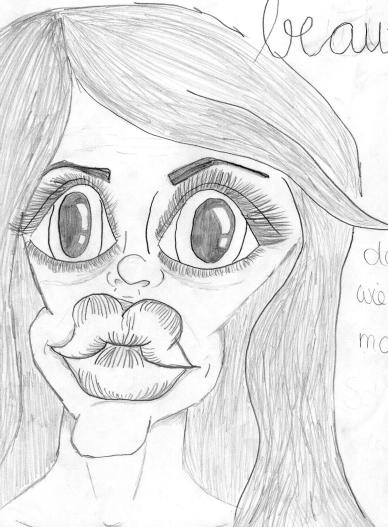 Also die Augen sind zu heftig.. Zwei, drei Wimpern hätten gelangt. Das Gesicht sähe etwas breiter bestimmt besser aus, und Ohren hätten auch nicht geschadet.. Wenn du in der Nähe ein Stück Kohle findest (frag mal deinen Onkel), dann versuch das Bild mal damit zu malen, denn dann brauchst du bei den Haaren nur ein paar Striche zu machen, die du dann auch verwischen kannst, und auch bei den Lippen.. und bei den Augenrändern..