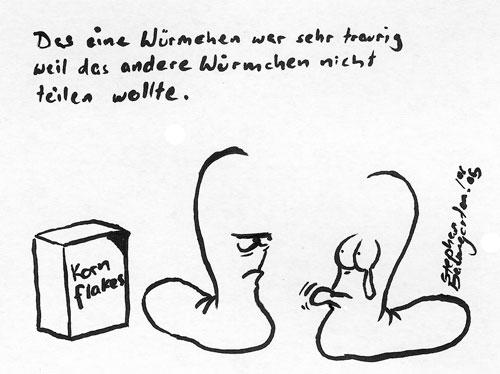 Der arme aaarme Wurm hat einen hohen Suchtfaktor, finde ich. Wie wär's, wen Du ab jetzt 1x wöchentlich einen Wurm-Cartoon rein stellst?