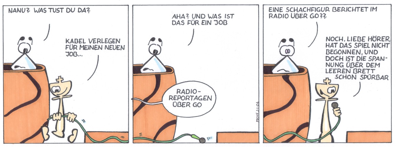 Zum Inhalt: Die Reporter-Story geht erst morgen weiter, weil mir noch nicht klar ist, auf wieviele Strips ich sie verteile, das da unten ist also ein Lückenfüller; als Vertreter jahrtausendealter Spiele haben natürlich sowohl Schachkönig als auch Gostein umfassende Kenntnisse der griechischen und römischen Literatur ;) :D