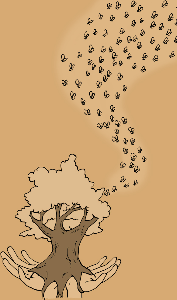 Also erstmal find ich das ne sehr schöne idee, aberr.... Hiller ich würde die Schmetterlinge größer machen, die sehen aus wie Fliegen, die können ruhig in der Proportion nicht zu dem Baum passen, aber es geht hir um Symbolik ich finde nciht, dass das rüber kommt. Auch wenn du es bereits abgelehnt hast finde ich Daniels Version viel viel passender. Dadurch wurde das Bild zu was ganz besonderem. Ich finde du solltest dir das nochmal überlegen und nicht weil du schon so weit fertig bist es so lassen.