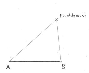 Jetzt verbinde ich die Eckpunkte A und B der Kante mit dem Fluchtpunkt (als Hilfslinien).