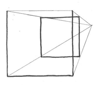 3. Die Eckpunkte des Quadrats mit dem Fluchtpunkt verbinden