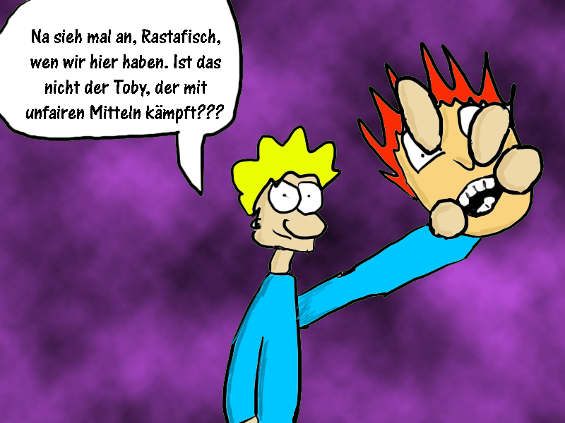 Ps.: Nochmal der Text von der rechten Figur stammt von Dir, erzähl rum was Du willst ich weiss wie meine Zeichnungen entstanden sind und der dazugehörige Text, und hör auf und zeichne Lieber mal was zum Thema als mir hier mit Mitteln zu Kloppen die nichts mit zu tun haben !! Ende