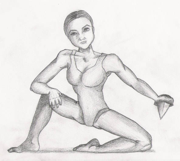 An dieser Dame hier bin ich jetzt länger gesessen, als ich das üblicher Weise so tue. Mit Waffen hab ich's auch nicht so, also ist meine eine "light-"Variante, eine muskulöse aber leichtfüßige Assassine, die ihre Arbeit ziemlich lautlos verrichtet.