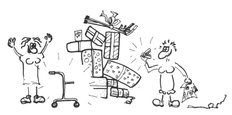 Die nett eingepackten Krücken oben drauf find ich am besten :D :D