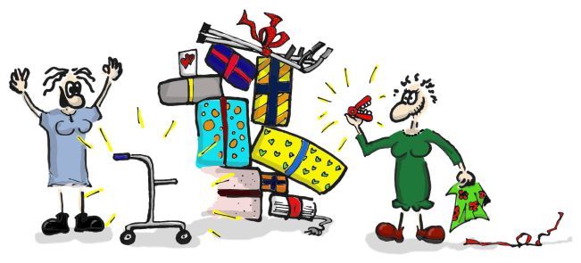 schöne zeichnung, aber, so viele geschenke brauchen sie eingentlich nicht... ;) :D