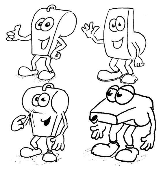Es läuft also so, dass alle vier Pfeifen in verschiedenen Posen dargestellt werden und dann Baukastenmäßig zusammengebaut werden können. Ich lege also noch einen "Körperteil-Pool" an. Da sind dann Arme und Beine, die man einfach austauschen kann, wenn der Kunde z.B Pfeife 3 mit "Daumen hoch" - Zeichen braucht, bastelt er es sich selber zusammen. Deswegen habe ich auch jetzt kurz vor meiner Prüfung