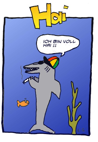 hihi... der kleine Fisch neben dem Hai könnte noch eine Sprechblase bekommen: "High, na?" oder sowas...