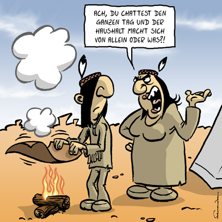 Und weil das letztes Mal so gut hingehauen hat, starte ich auch gleich einen zweiten Versuch. Die Indianer haben es mir irgendwie angetan, da könnte ich noch ein paar Cartoons zu machen. Also: