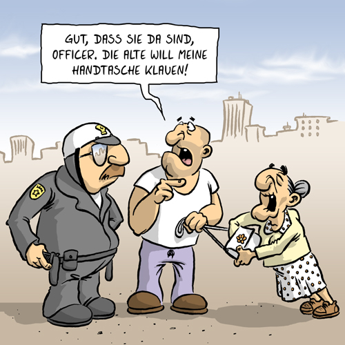 Nun meinte ein Freund von mir, den Cartoon würde es schon so ähnlich geben, kann mir aber nicht sagen, wann, wo und von wem er den gesehen hat. "Einfach so'n Gefühl"! Da ich keine Gags machen will, die es schon gibt, frage ich einfach mal rum.