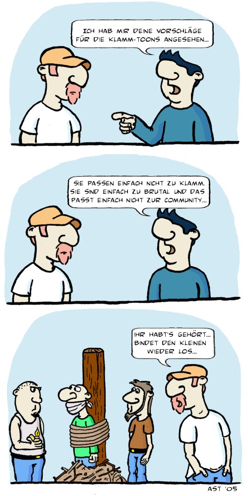 Auf diesen beiden Sätzen bassierd dieser toon, der auch in der weiterentwicklung ist.... Mein Plan ist, die "Bösen" immer mehr in die Toon einzubinden um einen Spannungsbogen aufzubauen und etwas leben in die Toons zu bekommen.... wie findet ihr die Idee?