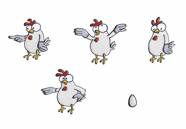 Pünklich zur Vogelgrippe: Mit dem Huhn liegst Du voll im Trend. Ne, mal ernst, das Huhn ist echt klasse, das solltest Du zu einer Hauptfigur machen. :)
