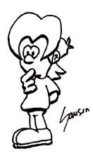 habe hier mal eine meiner Figuren komplett am PC gemacht..daher die üble Qualität. Bei der Koloration hab ich mir auch nicht wirklich viel Mühe gegeben, da die Figur eigentlich nur mein Avatar für dieses Forum werden sollte. Habe so auch dummerweise das inking mit den Pinsel-Werkzeug gemacht, was ich normalerweise nicht tue...nun sieht die größere Version verschwommen aus etc.!