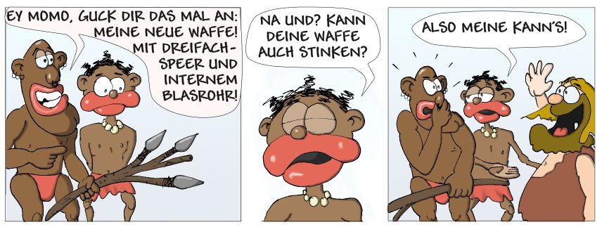 Schließlich trifft er auf einen Eingeborenen, dem er sich auch schon bald anschließt. Hier beginnen die Abenteuer von Momo und Müffel...