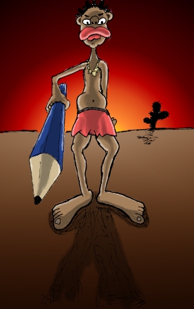 Meiner Ansicht gehört dann der Horizont tiefer und auch am Buschmann selber sollte man noch was ändern...die Arme sind zum Beispiel immer gleichdick...die müssten aber nach oben hin dünner werden.