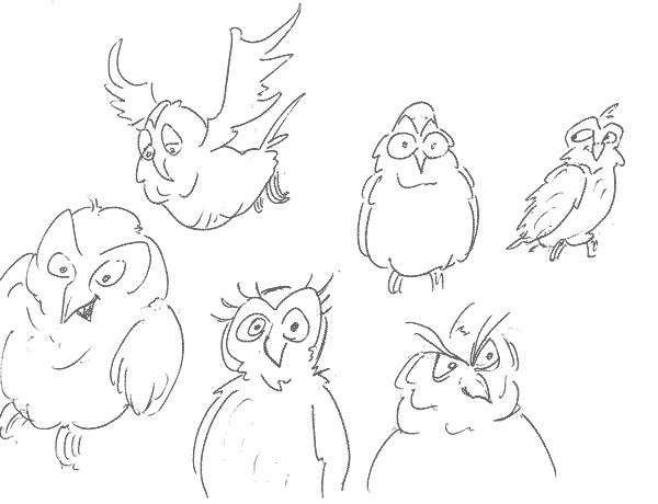 Versuch es mal bei der Google-Bildersuche mit den Stichwörtern "Disney" und "owl". Ich glaub die würden ungefähr deinen Vorstellungen enstprechen, zumindest findest du ein paar Anregungen. ;)