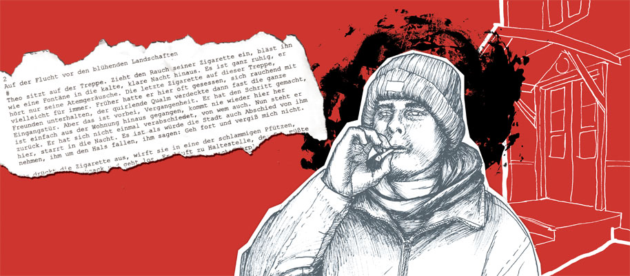 Bei der Zeichnung wie gesagt stört mich die Hand schon ein bisschen. Wenn das wirklich fünf Finger sind, hebt er die Zigarette dann mit dem Zeigefinger oder mit dem Mittelfinger? Aber auf den ersten, zweiten und dritten Blick fällt das überhaupt nicht auf. Die Zeichnung ist immer noch sehr gut.