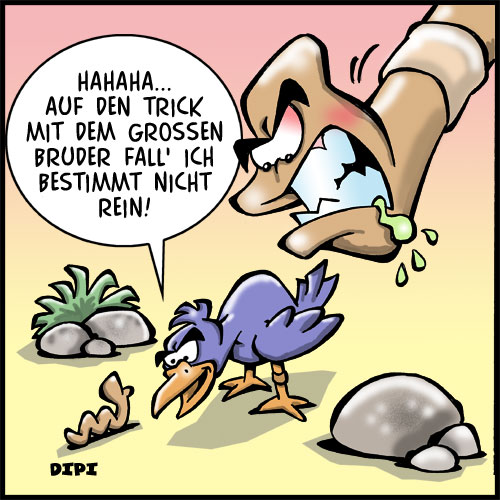 Bloß der Cartoon mit dem Regenwurm den finde ich etwas komisch. Für mich sieht es so aus, dass der Vogel immer neben den Wurm schielt. Als ob beibe nebeneinander vorbei schauen.