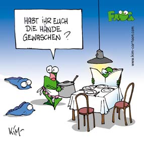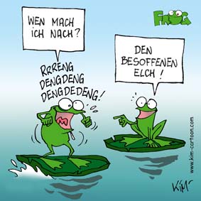 Soeben habe ich die letzten Arbeiten an meinem neuen Cartoonbuch beendet. "Frogs - Märchenprinzen" erscheint im August 2006 bei Carlsen. Neben vielen neuen Cartoons gibt es da auch eine Reihe von Onepagern mit den glitschigen Gesellen und auch die Prinzessin hat hier einige spektakuläre Auftritte.