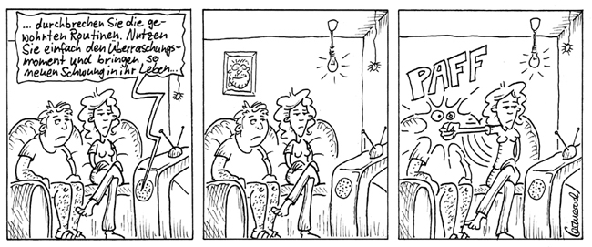 Ok, hier ist noch einer. aber wieder ein perspektivefehler (wie vorher mit dem tv). die zeitschrift kann der typ so eigentlich gar nicht sehen. aber die strips sind eh mehr oder weniger hingekritzelt. bin immer so ungeduldig und mach dann einfach die outlines, bevor die vorzeichnung gut ist...
